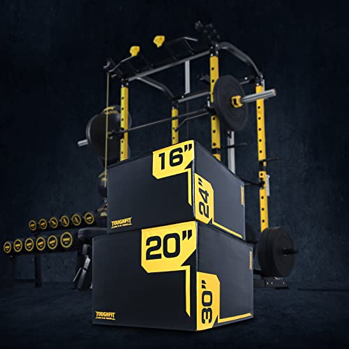 ToughFit Plyo Box - 3 in 1 Foam Plyometric Box - Jump Box for MMA, Crossfit - Adjustment Height Plyometric Jump Box for Home Gym - PVC Cover Platform & High-Density Workout Box (Small - 20"x18"x16")