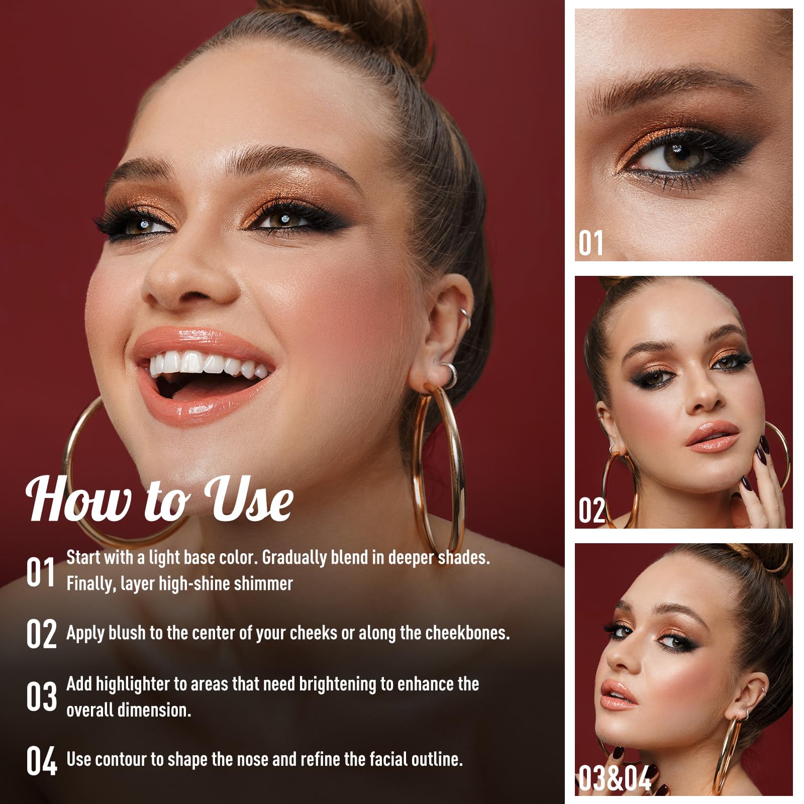 - 【Vibrant and Inclusive Colors】Eye-catching purples, reds, golds, oranges, and browns are complemented by blushes and contour shades suitable for all skin tones.