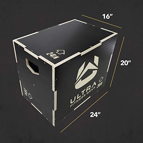 Ultra Fitness Gear Plyo Box - Anti-Slip Wood 3-in-1 Plyometric Jump Box for Training - Squat, Step Up, Box Jumps & More - Workout Box Size 24/20/16 (Large) - Home Gym Exercise Equipment