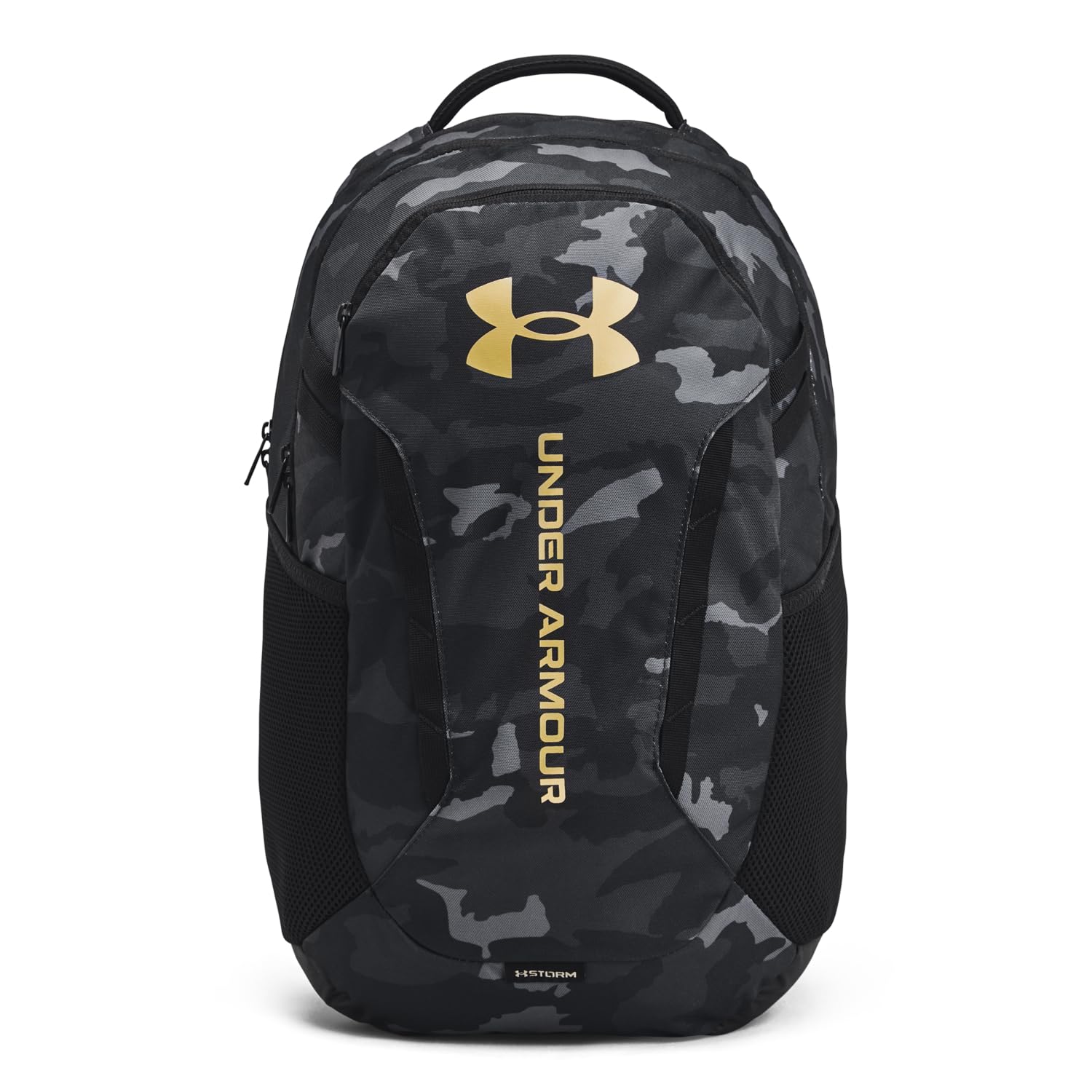 Under Armour Unisex-Adult Hustle 6.0 Backpack, (001) Black/Black/Metallic Gold, One Size Fits Most