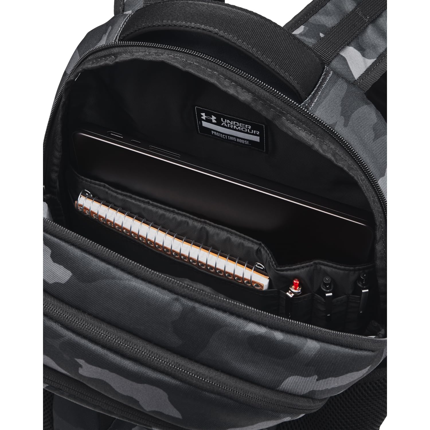 This backpack does it all. It's water-repellent for the rain, tough as nails, comfortable as anything, and has all the pockets you need to hold all your stuff. Water-resistant UA Storm technology keeps your stuff dry. Soft-to-the-touch top coat on material for added durability. Secondary compartment can be dual-purposed as a shoe/laundry pocket. Secure zip front pocket for essential item storage & side water bottle pocket that fits 32oz bottle. Soft-lined laptop sleeveāholds up to 16' MacBook ProĀ® or similarly sized laptop. Molle webbing for additional attachment points. Top grab handle. . . . 100% Polyester.