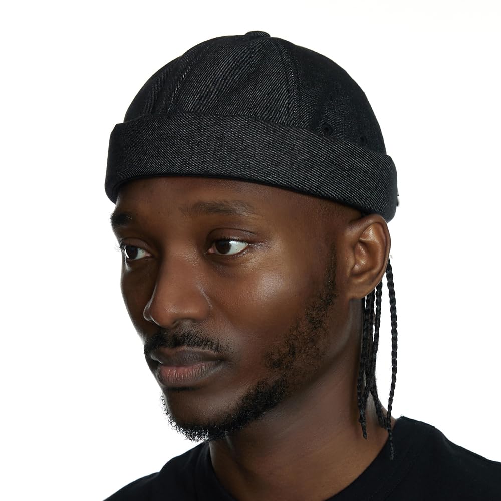 UNDERCONTROL Extra Large Oversized XXL Brimless for Big Head Hand Stitched Steel Label Adjustable Non Fade Denim Unisex Plus Size Korean XL Watch Cap (Denim Black)