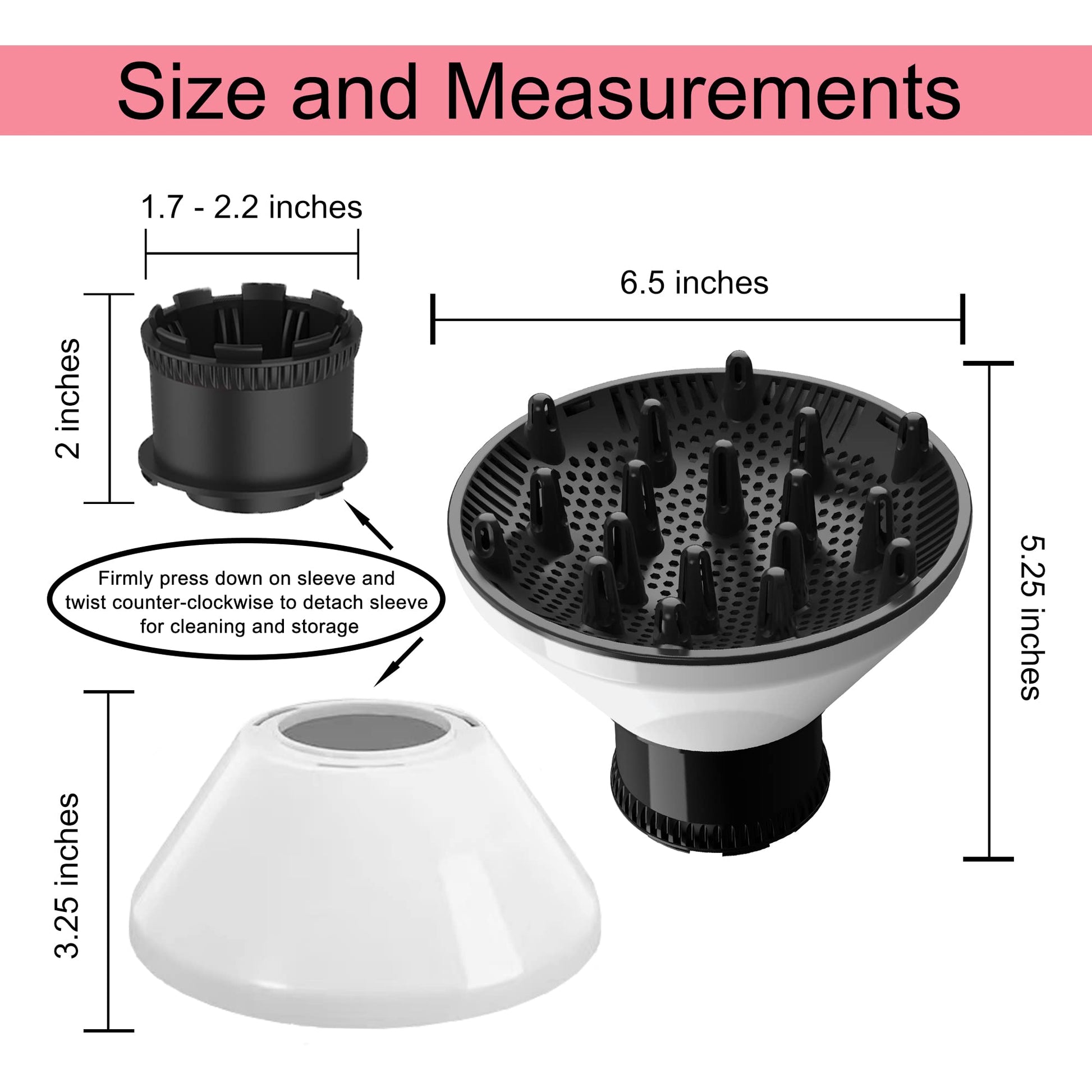 Universal Hair Diffuser Adaptable Hair Dryer Attachment for Blow Dryer Nozzles from 1.7 to 2.2 inch Diameter (White)