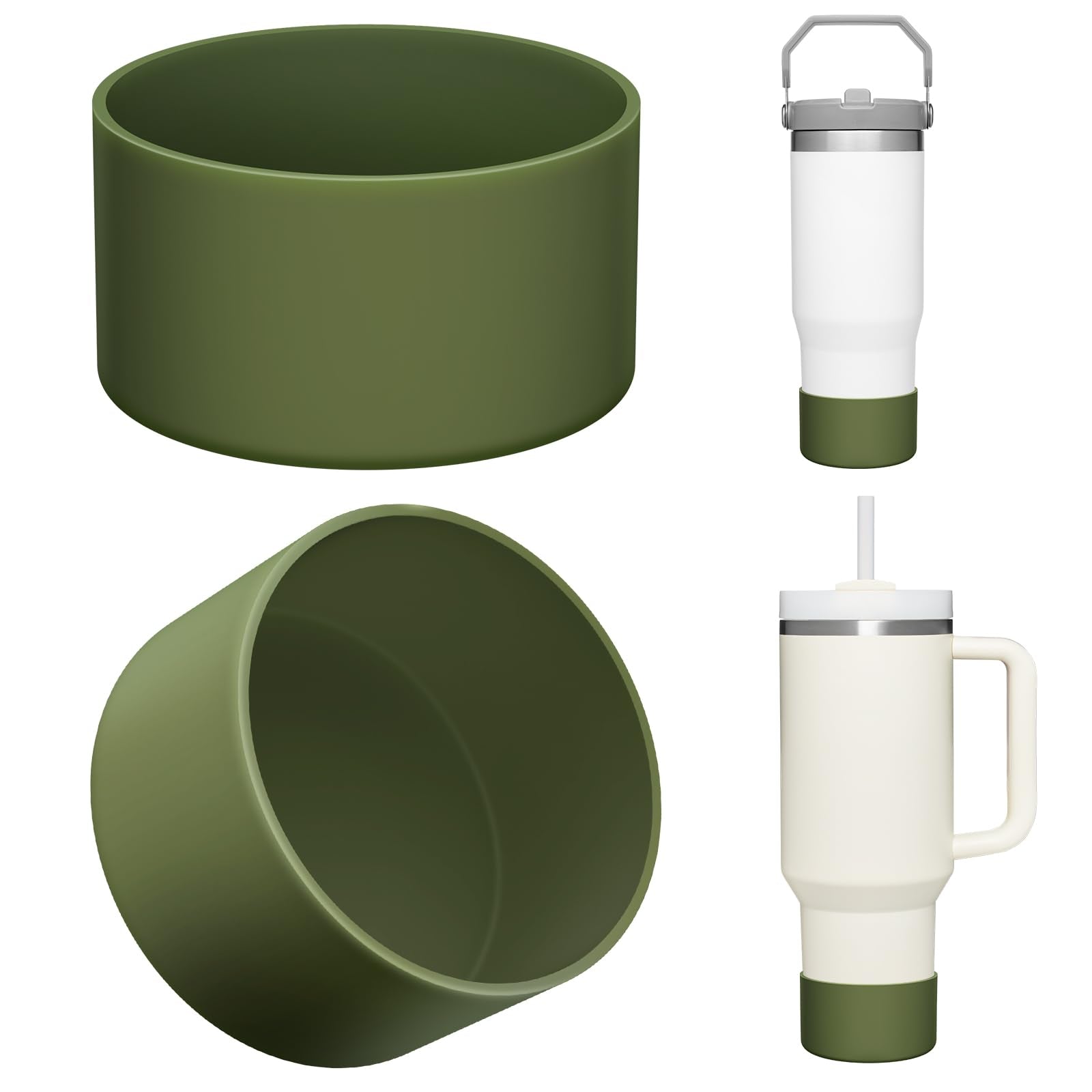 Upgrade 2PCS Protective Silicone Boot Bumper for Stanley Quencher Adventure 40oz 30oz IceFlow 20oz 30oz Tumbler, Water Bottle Bottom Sleeve Cover Accessories for Stanley Mug Cup(Army Green)
