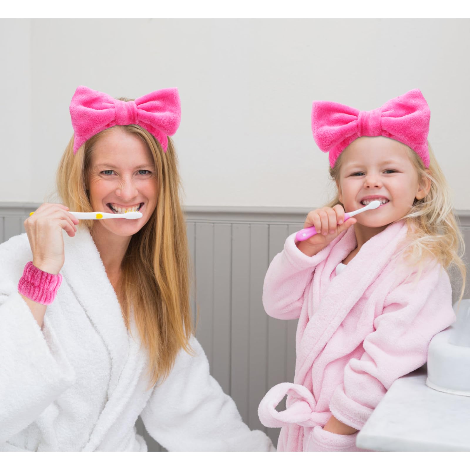 VELSCRUN 6 Pack Spa Headband, Makeup Headbands, Face Wash Headband, Skincare Headbands, Rose Pink Sponge Hair Band Bow Tie Spa Head Band for Washing Face Wristband Set Women Girls Hair Accessories