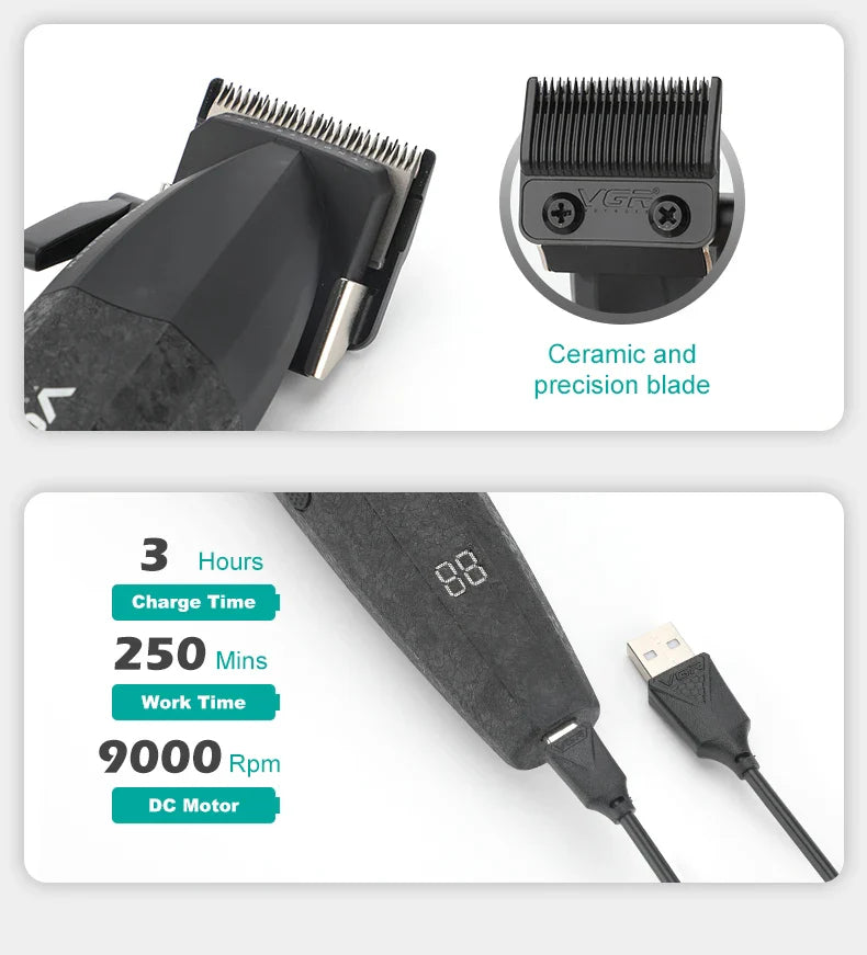 VGR Hair Trimmer Professional Electric Hair Clipper Barber Hair Cutting Machine 9000 RPM Haircut Metal Trimmer for Men V-640