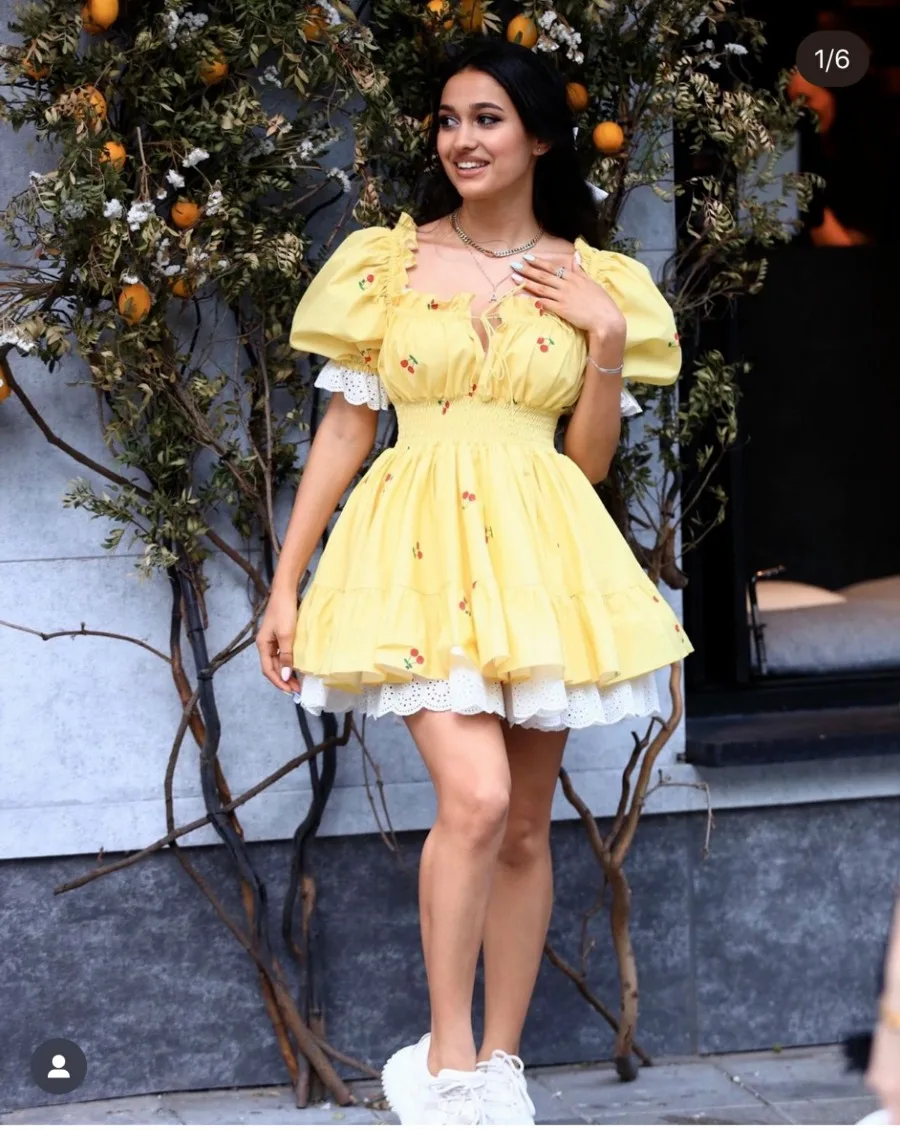 Vintage Puff Sleeve Mini Lace Dress Women Floral Printed Off Shoulder Ruffles Summer Dresses Party Elegant Square Neck Vestidos