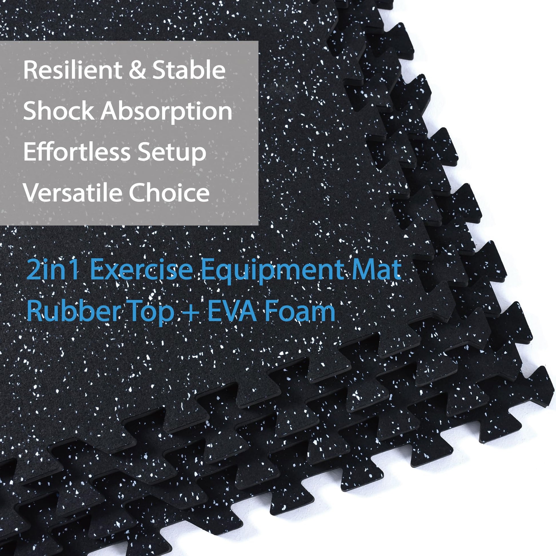 Vivaluz 0.56 Inch Thick 48 Sq Ft Gym Flooring for Home Gym, 12 Tiles Robust Rubber Top with Eva Foam Exercise Equipment Mats, Protective Flooring Puzzle Mat for Fitness Room