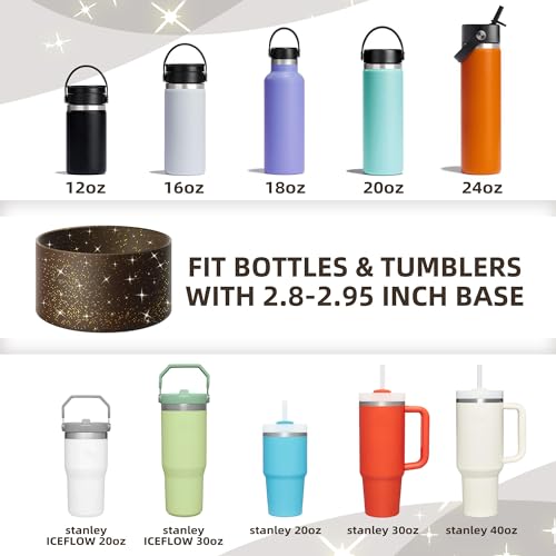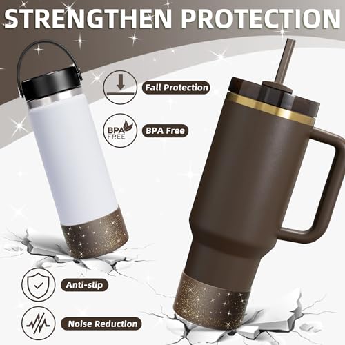 Vmini Protective Glitter Silicone Boot, Compatible with Stanley Tumbler 20-40oz & Hydro Flask Water Bottle 12-24oz and More Bottles/Tumblers with 2.8-2.95in Bottom, Bling Anti-Slip Sleeve Cover