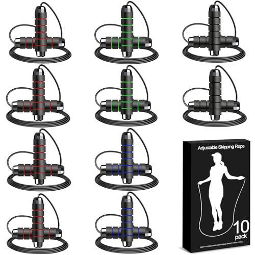 VOISEN Jump Rope,10 Pack Adjustable Skipping Rope with Soft Foam Handles, Tangle-Free Rapid Speed Jumping Rope with Ball Bearings for Women, Men, and Kids Aerobic Exercise