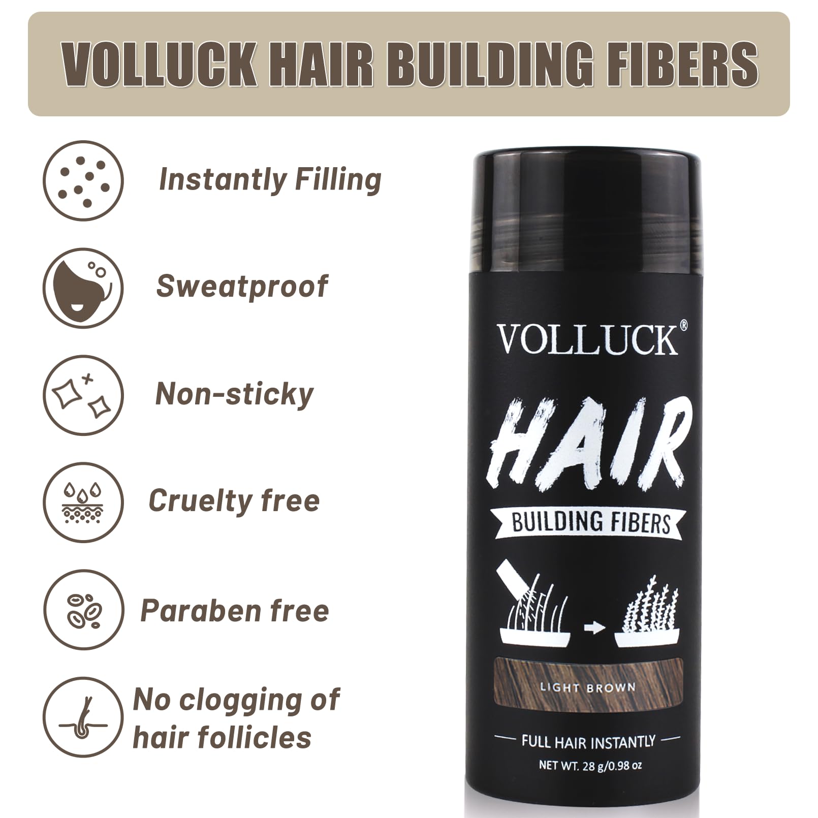 VOLLUCK Hair Fibers for Thinning Hair, Instant Coverage Hair Building Fibers for Women and men, Natural Hair Powder for Conceal Hair Loss 28 g (Light Brown)