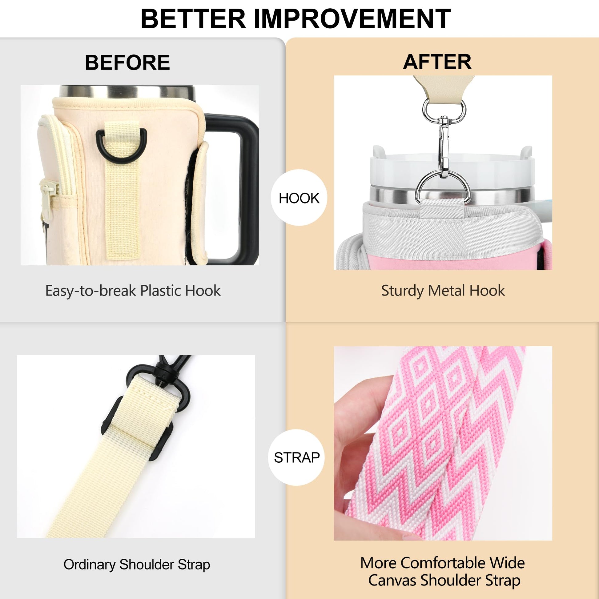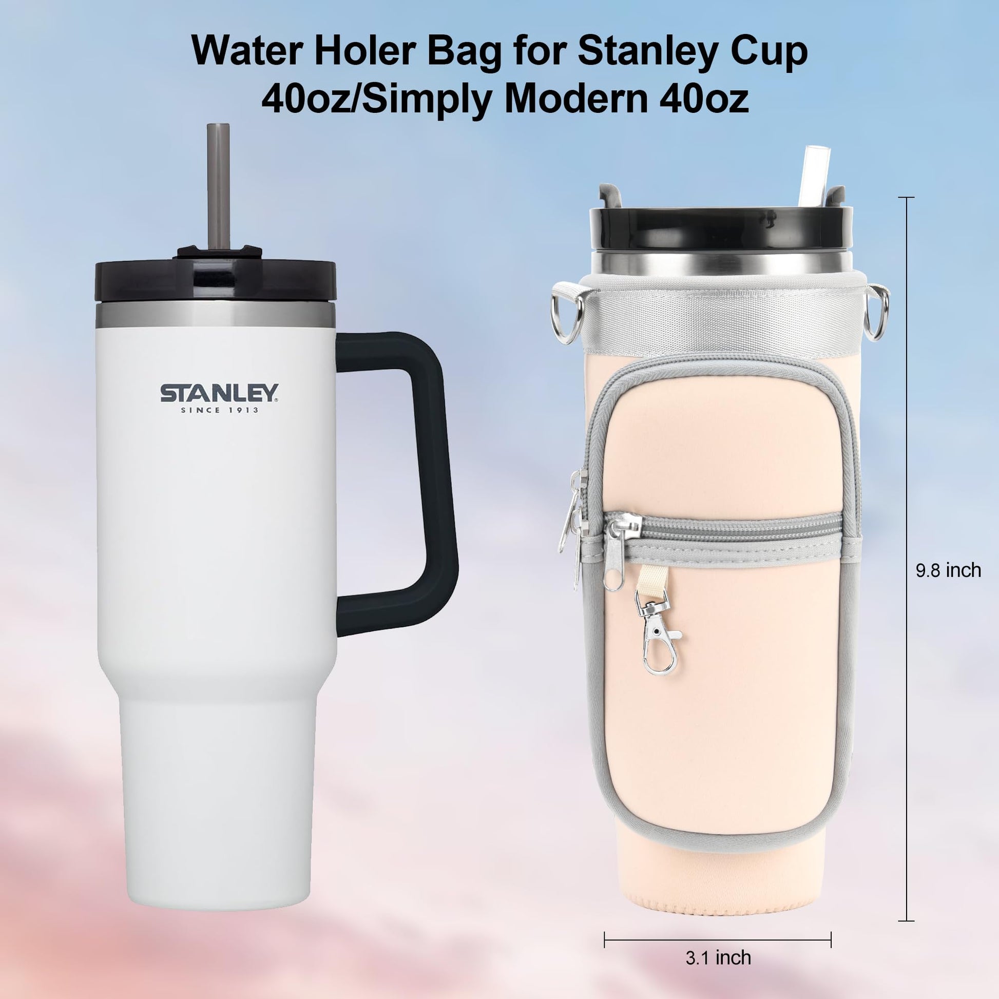 - 【Compatibility&Multiplefunction】 This water bottle holder measures 3.1'' * 9.8'', which is perfectly compatible with Stanley 40 oz tumbler with handle. It features a 6.7'' phone pocket and a card slot, you can store bank cards, changes, keys and other small items.
