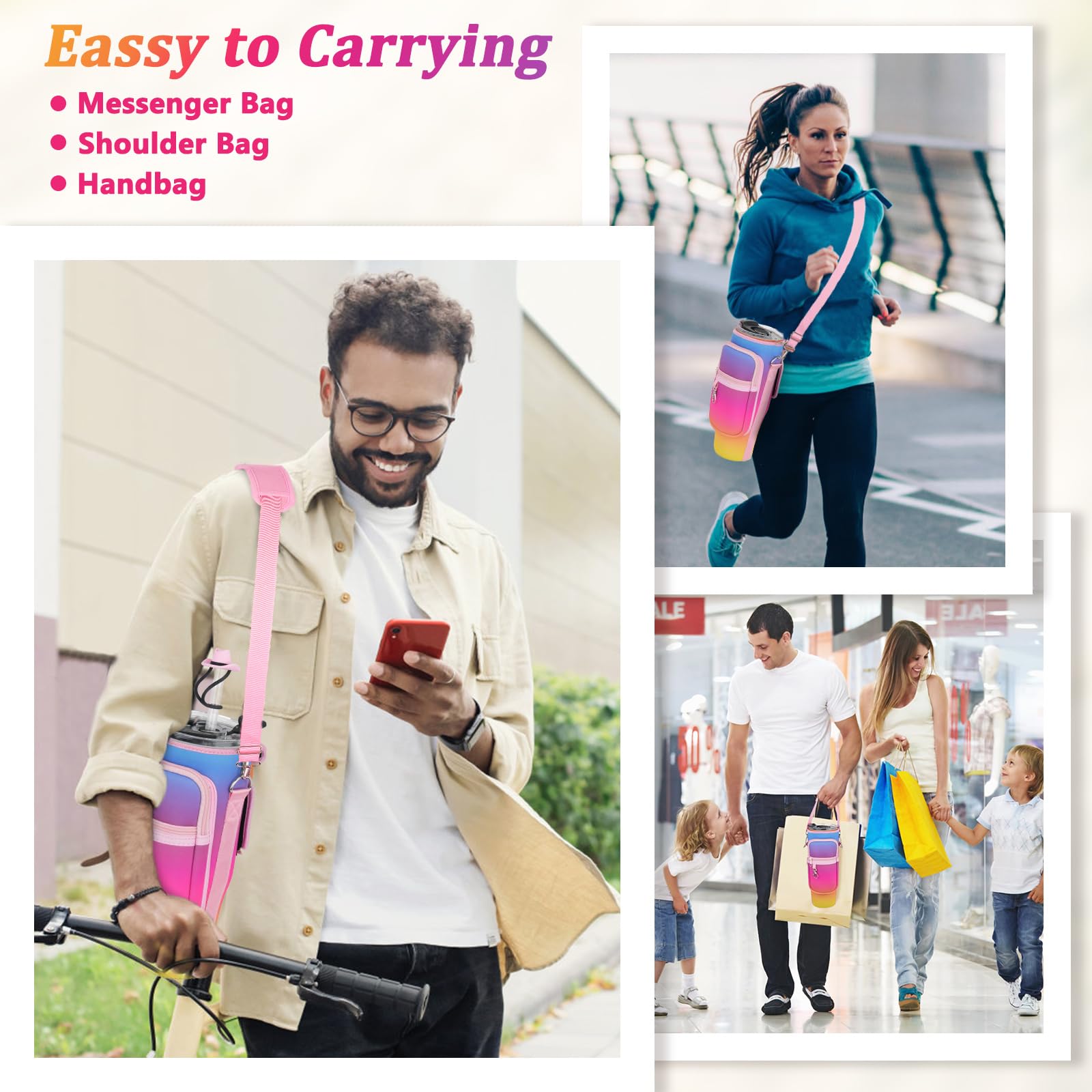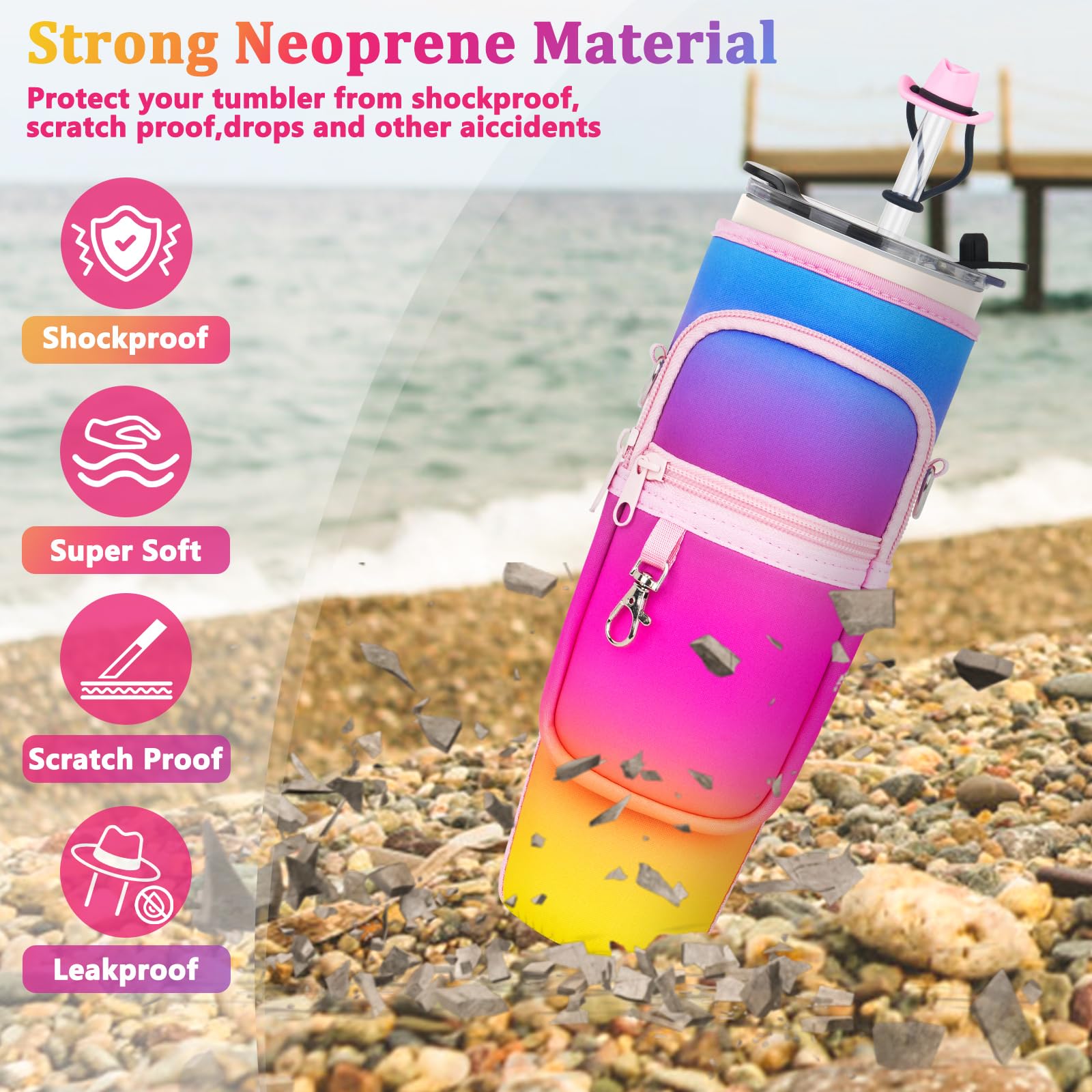 Details: Water Bottle Carrier Bag with Phone Pocket and 2 Straw Covers Compatible for Stanley/Meoky/BrüMate 40 oz Tumbler with Handle,Water Bottle Holder with Adjustable Strap Fits for Stanley Cup Accessories