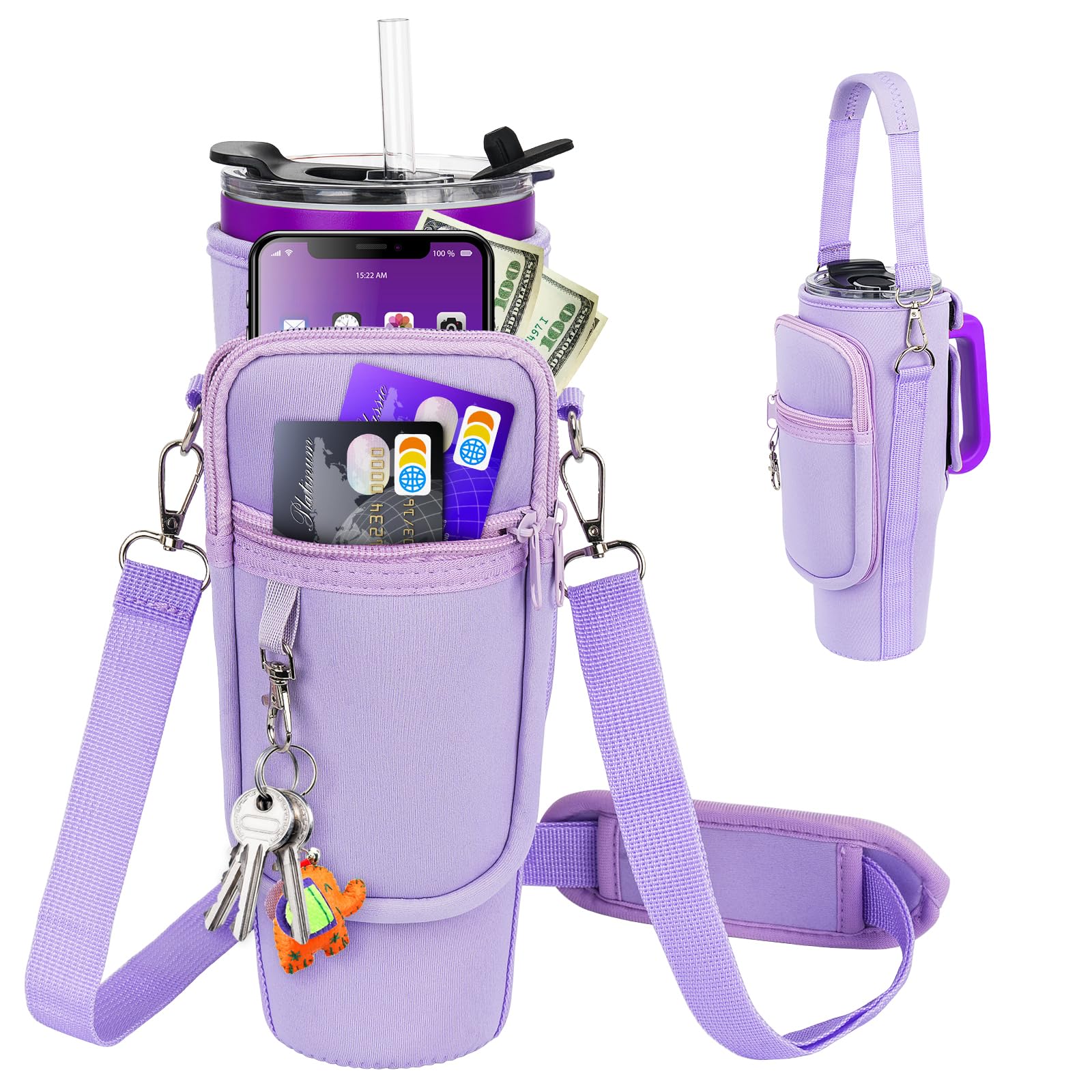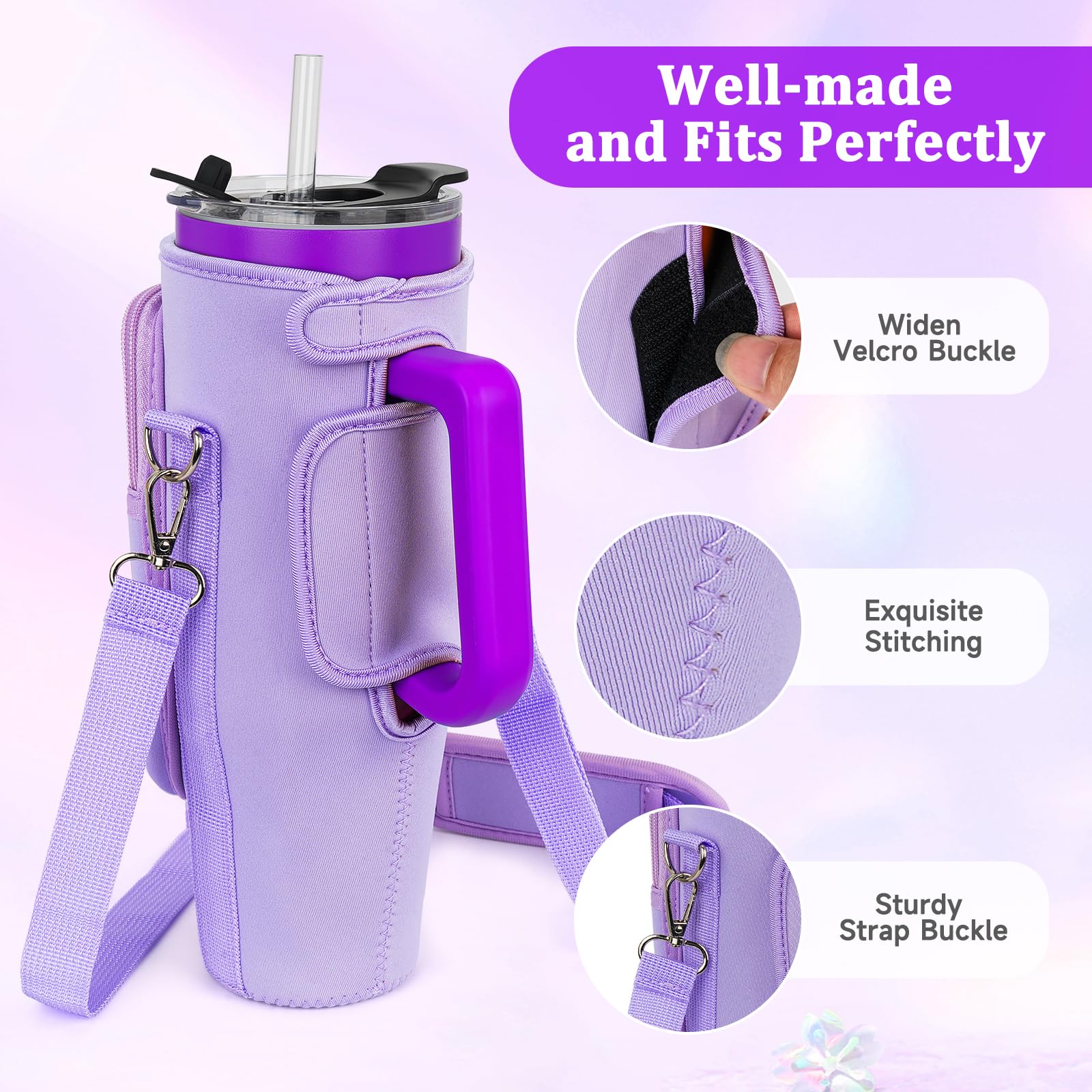 Details: Water Bottle Carrier Bag with Phone Pocket Compatible for Stanley/Meoky 40 oz Tumbler with Handle,Neoprene Water Bottle Holder Pouch with Adjustable Strap Compatible for Stanley Cup Accessorie