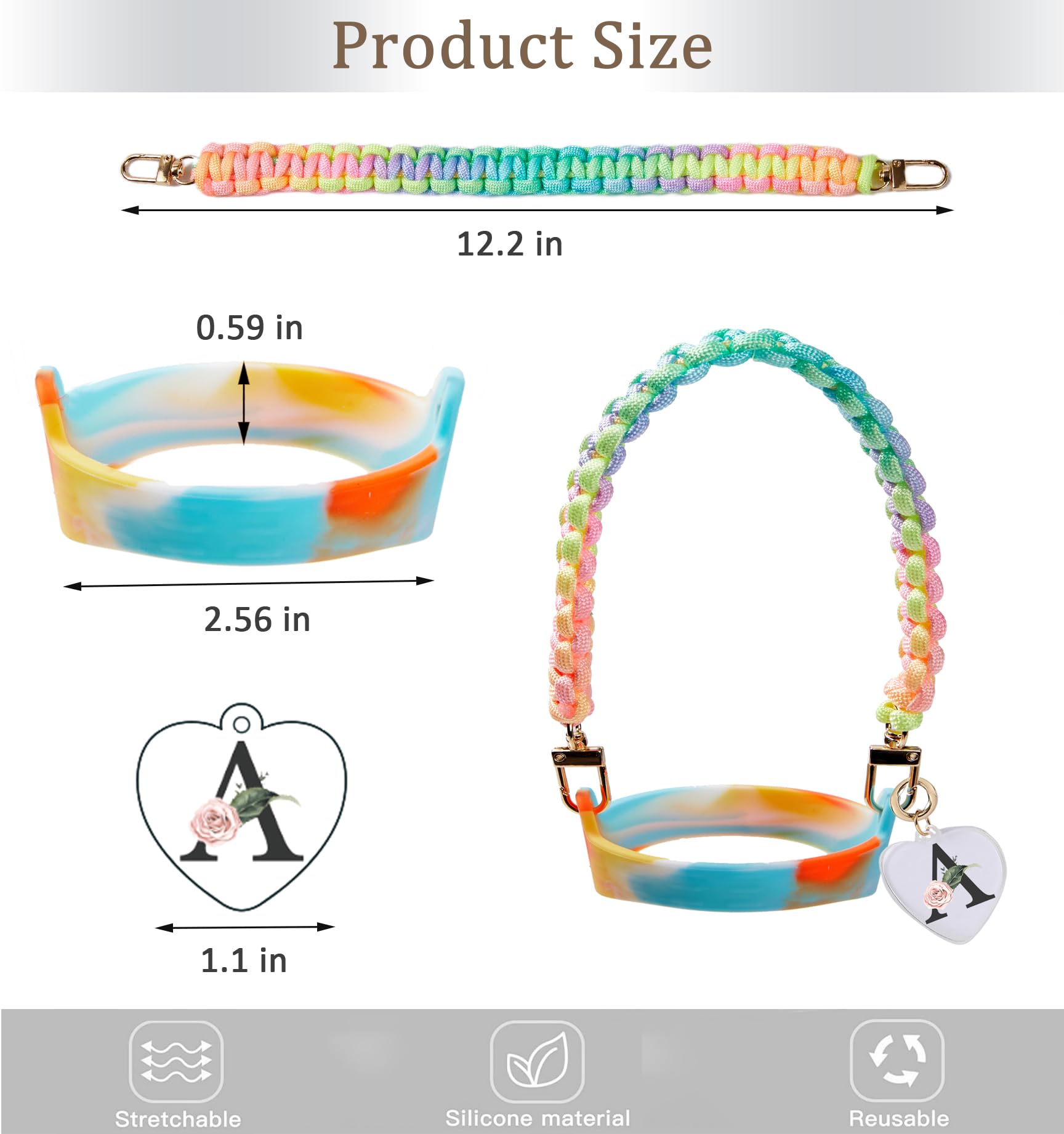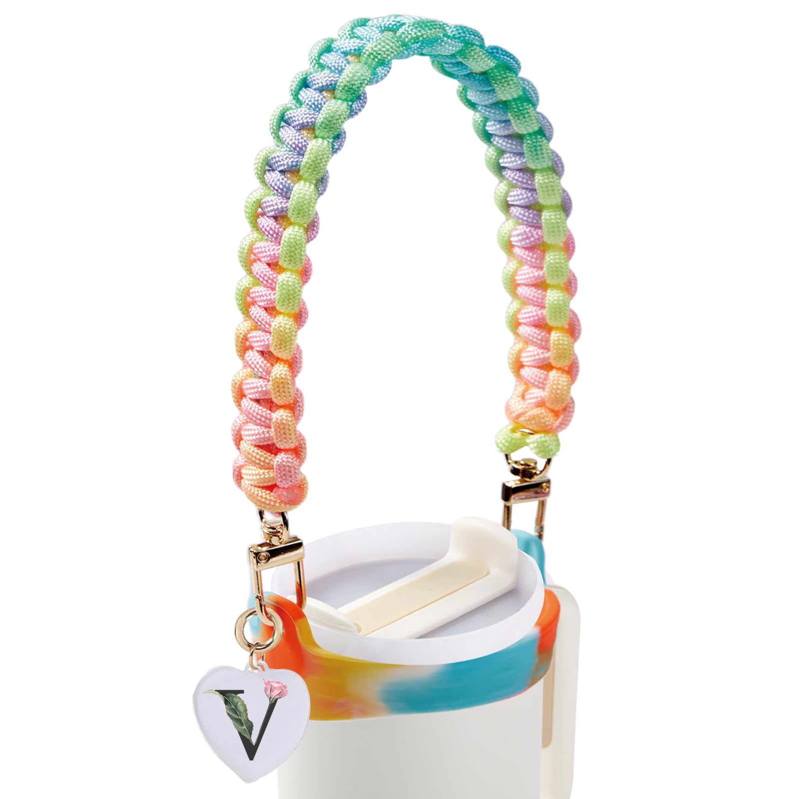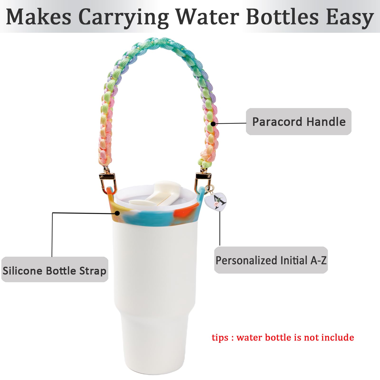 Water Bottle Handle - Personalized Name Initial A-Z Water Bottle Sling, Holder, Lanyard, Carrier,Holder with Strap - Fits Most 8-40oz Water Bottles - Compatible Stanley Cup Accessories (V, Rainbow)