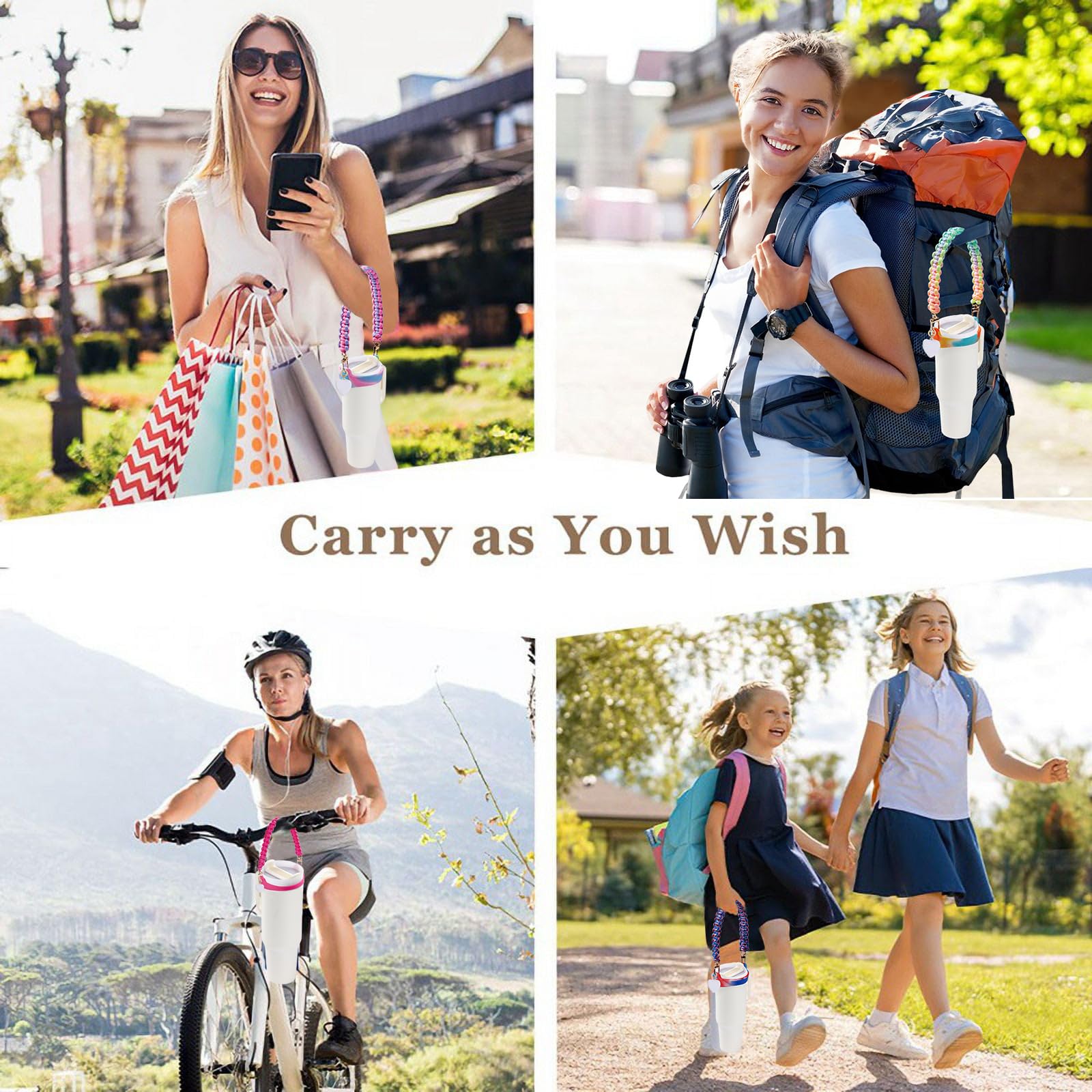 - 【Stretches to Fit Most 8-40oz Bottles】- Our water bottle handle come with a durable silicone safety ring with a handmade paracord cord , compatible with Stanley tumber. It is designed for 8 oz to 40 oz water bottles and fits securely to prevent accidental slipping of water bottles
