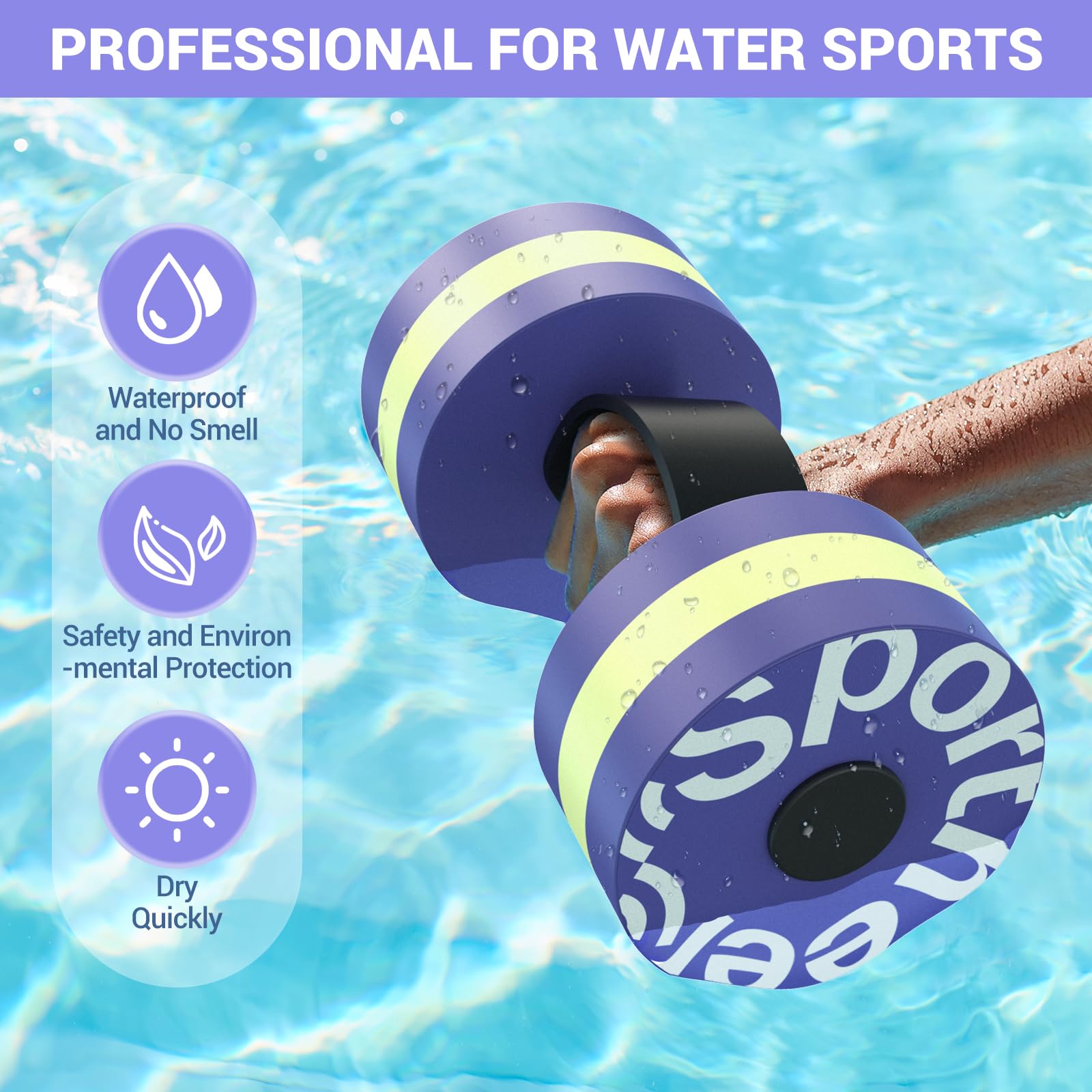 - Wide Application: From swimming classes, water physical therapy, pool sports, underwater fitness to water aerobics, the Sportneer water aerobics weights accessories have limitless uses. Plus, the aqua dumbbells are perfect for water resistance exercises to build upper body strength and strengthen muscles.