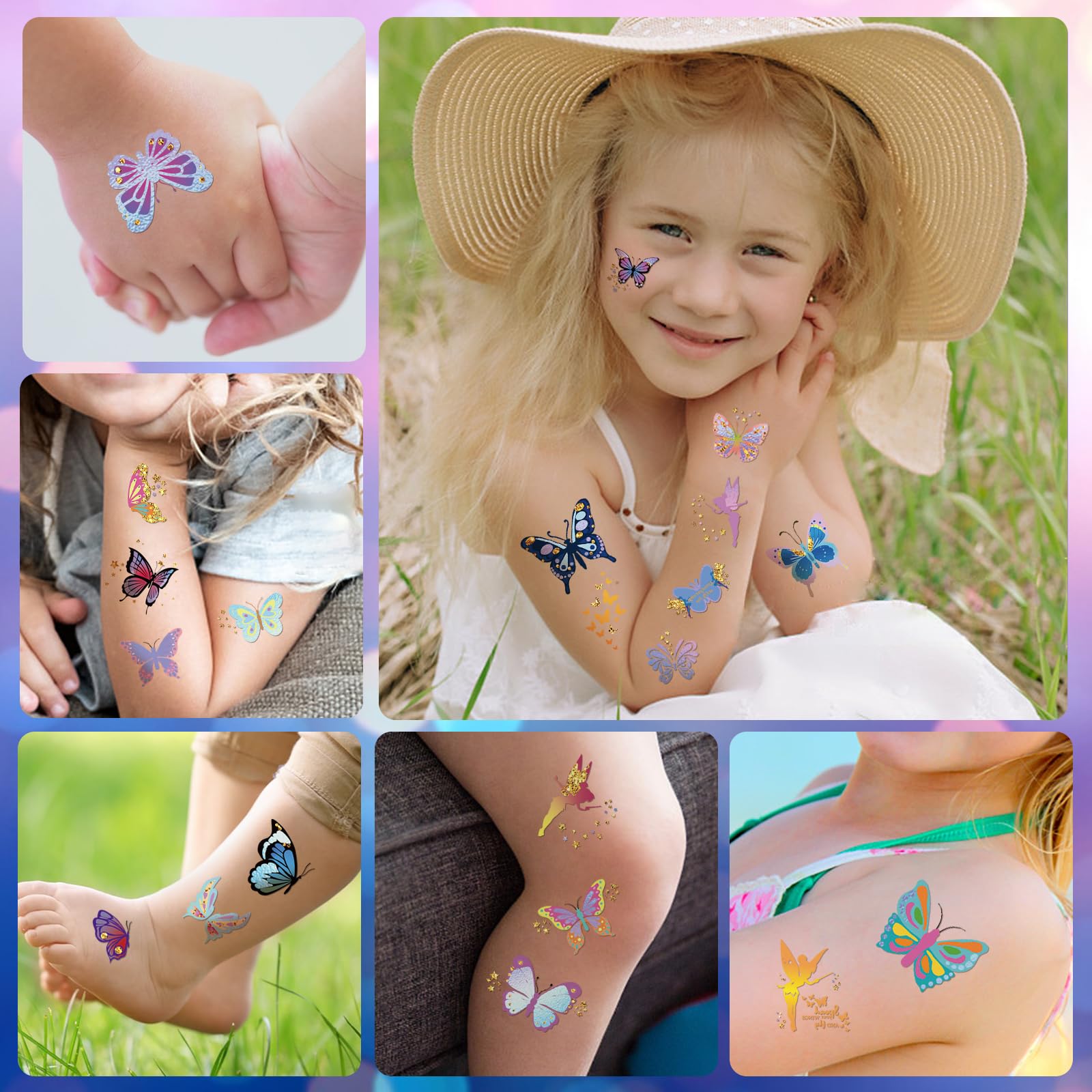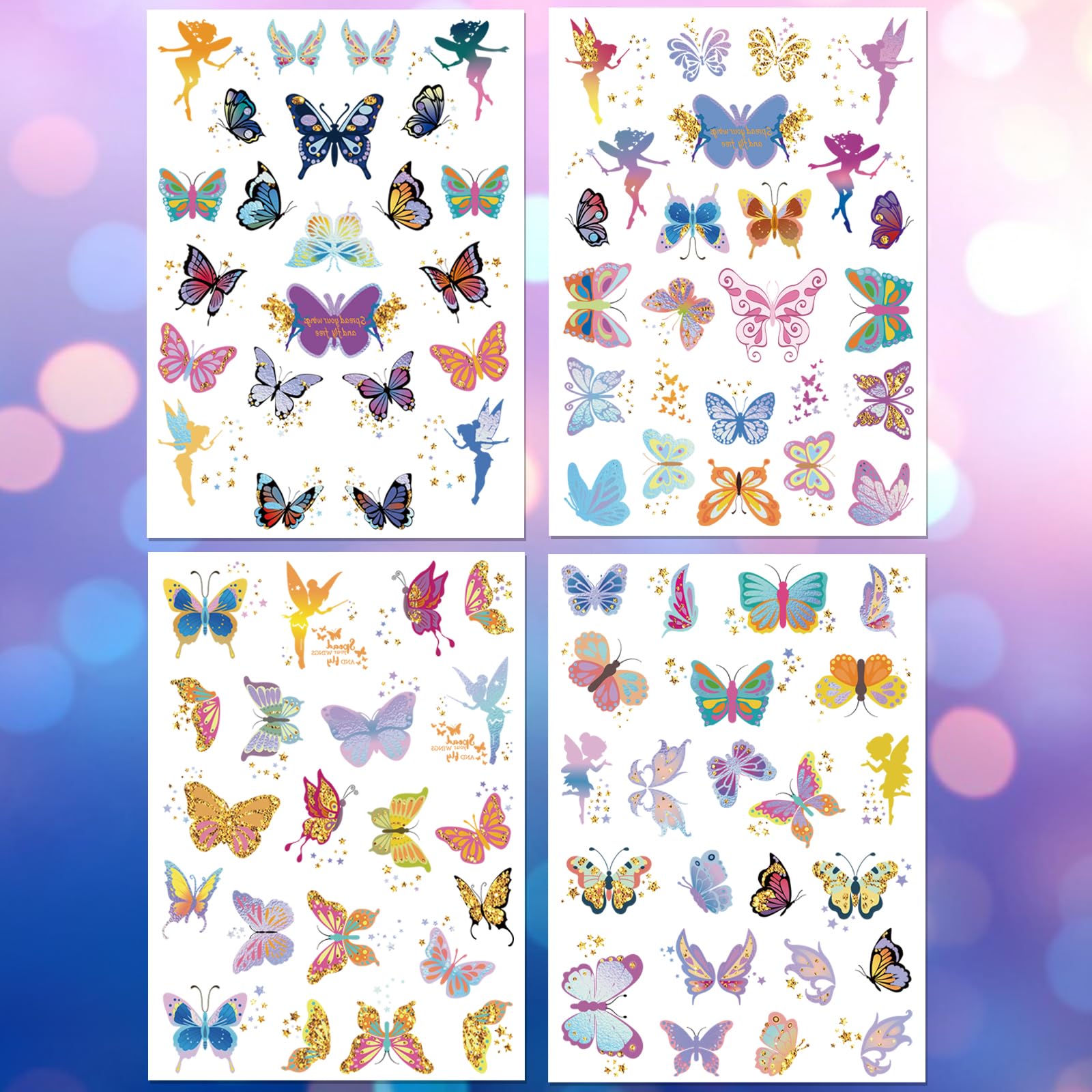 Waterproof Temporary Tattoos - 92pcs Butterfly Groovy Fake Tattoo for Kids, Stickers Party Favor Supplies Make Up Decoration, Festival Arts and Crafts Accessories Kits for Women Girls