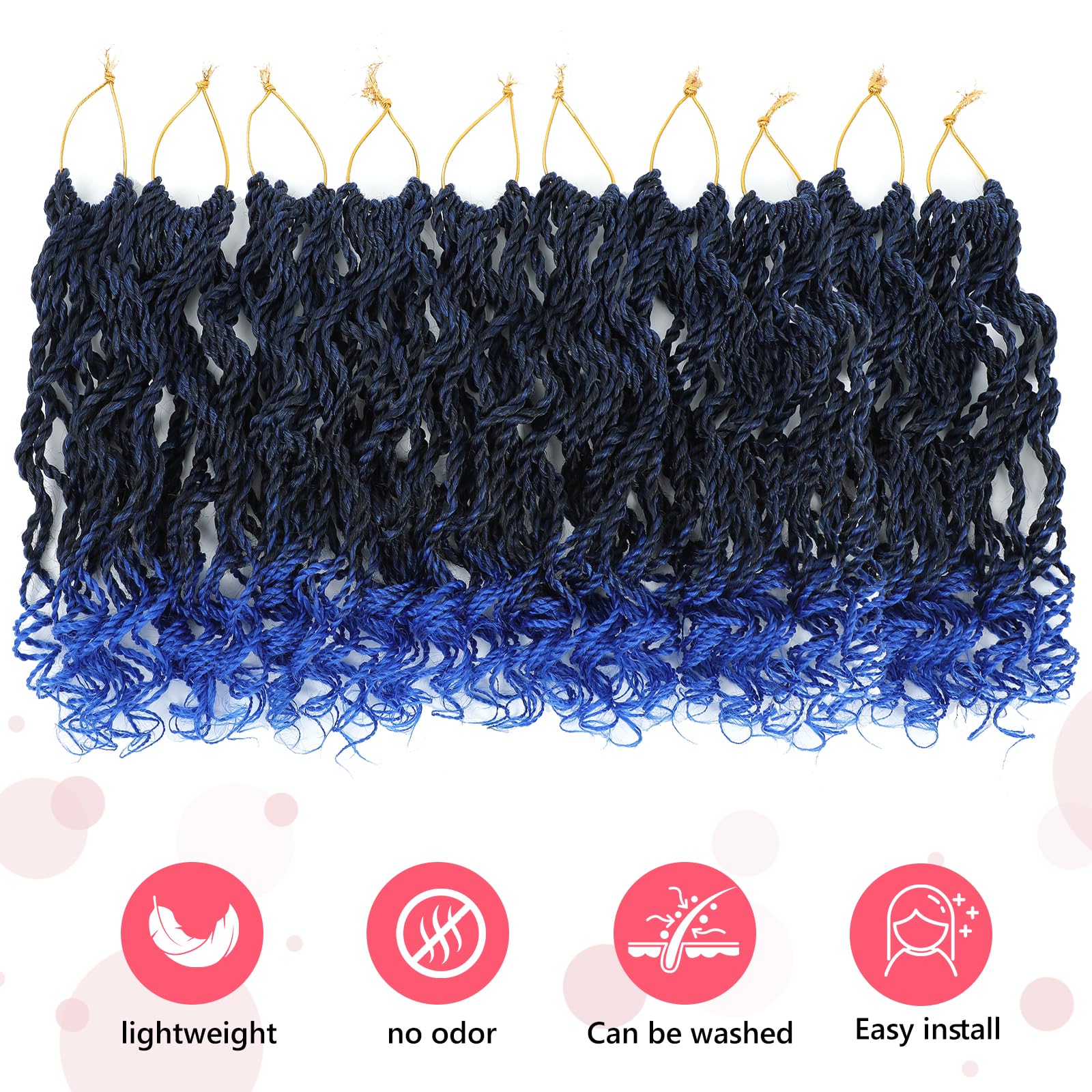 Wavy Senegalese Twist Crochet Hair For Black Women 8 Inch 10 Packs Senegalese Twist Braiding Hair Crochet Twists Pre Looped Twist Crochet Hair Curly Crochet Twist Hair With Curly Ends(1B/BLUE)