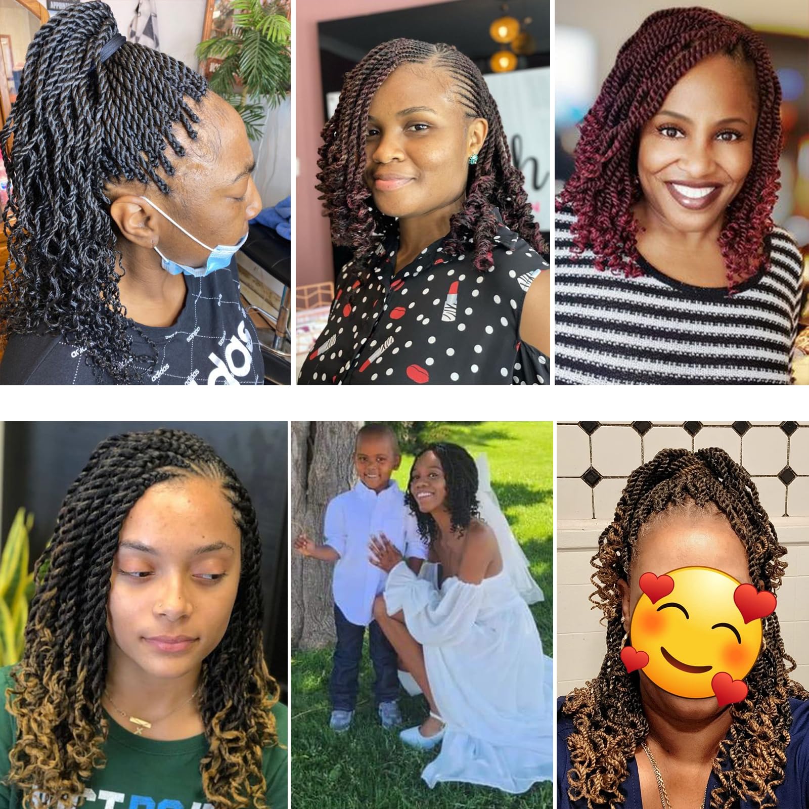 - 4.Senegalese Twist Crochet Hair Advantages -- Crochet Twists Pre Looped, Light Weight, Very Soft, Not Rough, No Smell, No Tangle, No Harm To The Skin, Last Long Time, Natural Looking! The Crochet Twist Hair Can Be Worn Down Or Styled Into Updos And Half-Up Styles, Offering Some Flexibility To The Wearer. Suitable For Women Of All Ages Use.