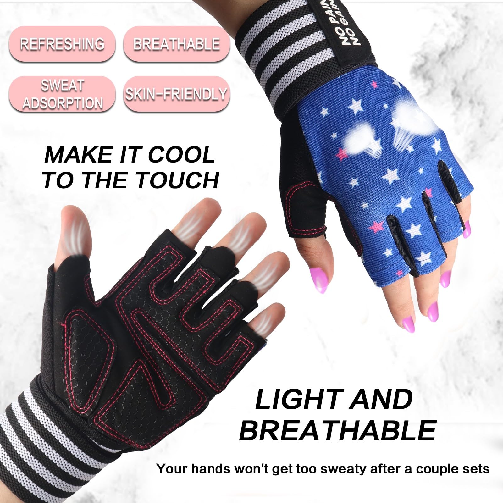 Weight Lifting Gloves for Women Gym Workout with Wrist Support,Padded Half Finger Gloves for Fitness Exercise (Stars, X-Small)