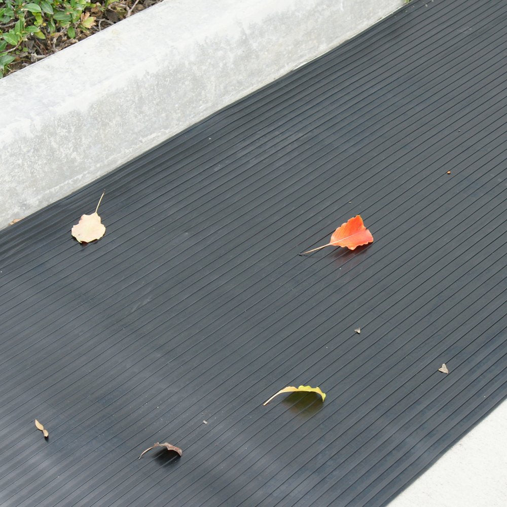 - Corrugated rubber floor mat with wider ribs for comfort and easy cleaning