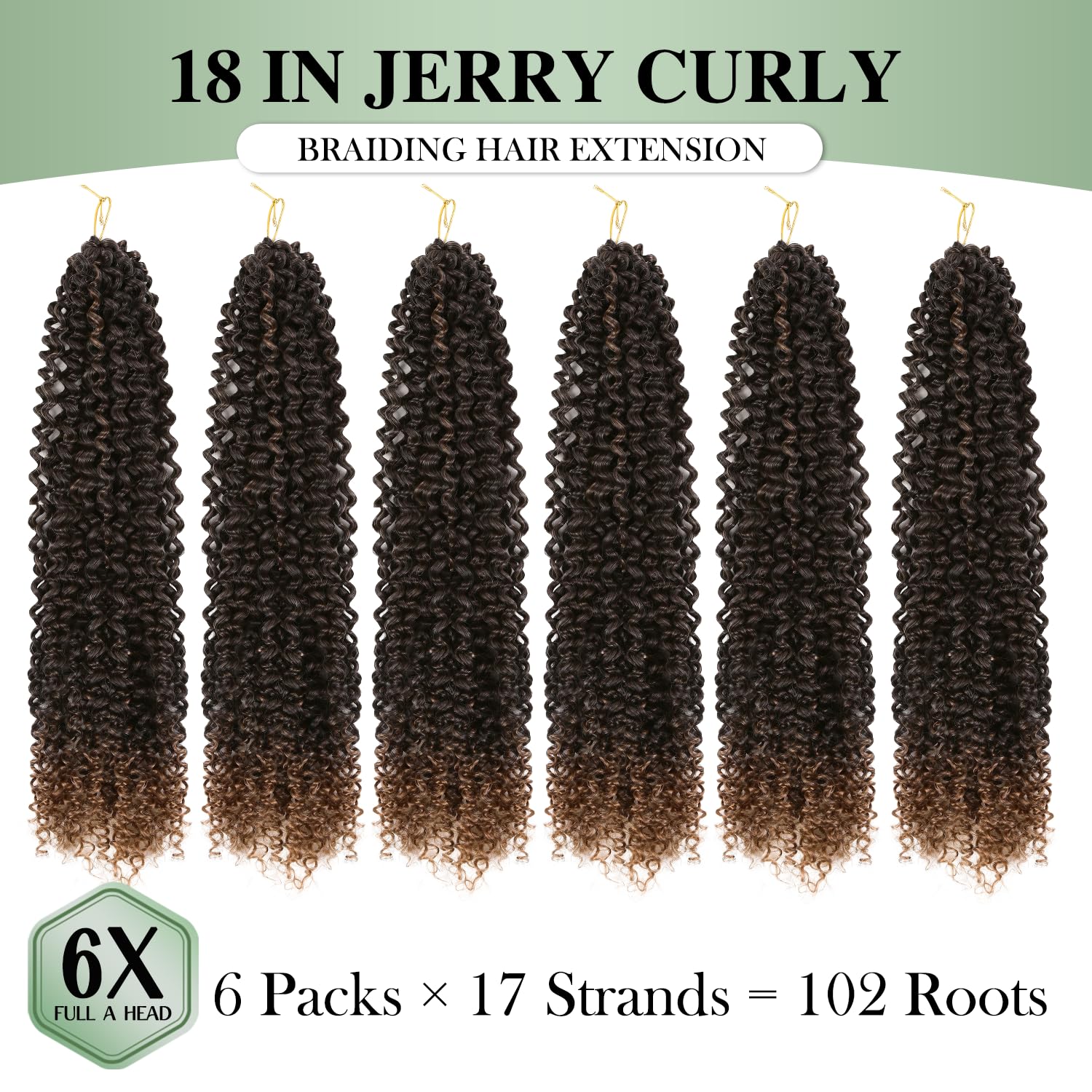WIGER Kinky Curly Braiding Hair Marlybob Crochet Hair Ombre Brown Jerry Curly Passion Twist Hair 18 Inches Long Curly Crochet Braids for Women Synthetic Kinky Twisted Hair Extensions (6 Packs, 1B/30)