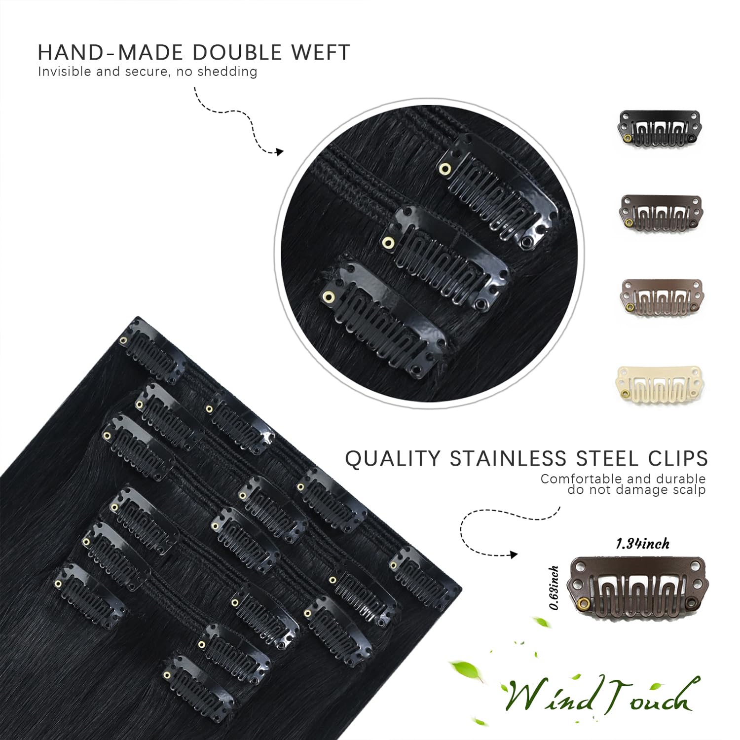 - ♡ High Quality: WindTouch clip in hair extensions are 100% real human hair with high quality, soft and smooth texture, just as good as your own hair. WindTouch hair extensions worth every penny, they are very thick. Each pack of clip in hair extensions is 120g. Usually one pack is enough for your full head.