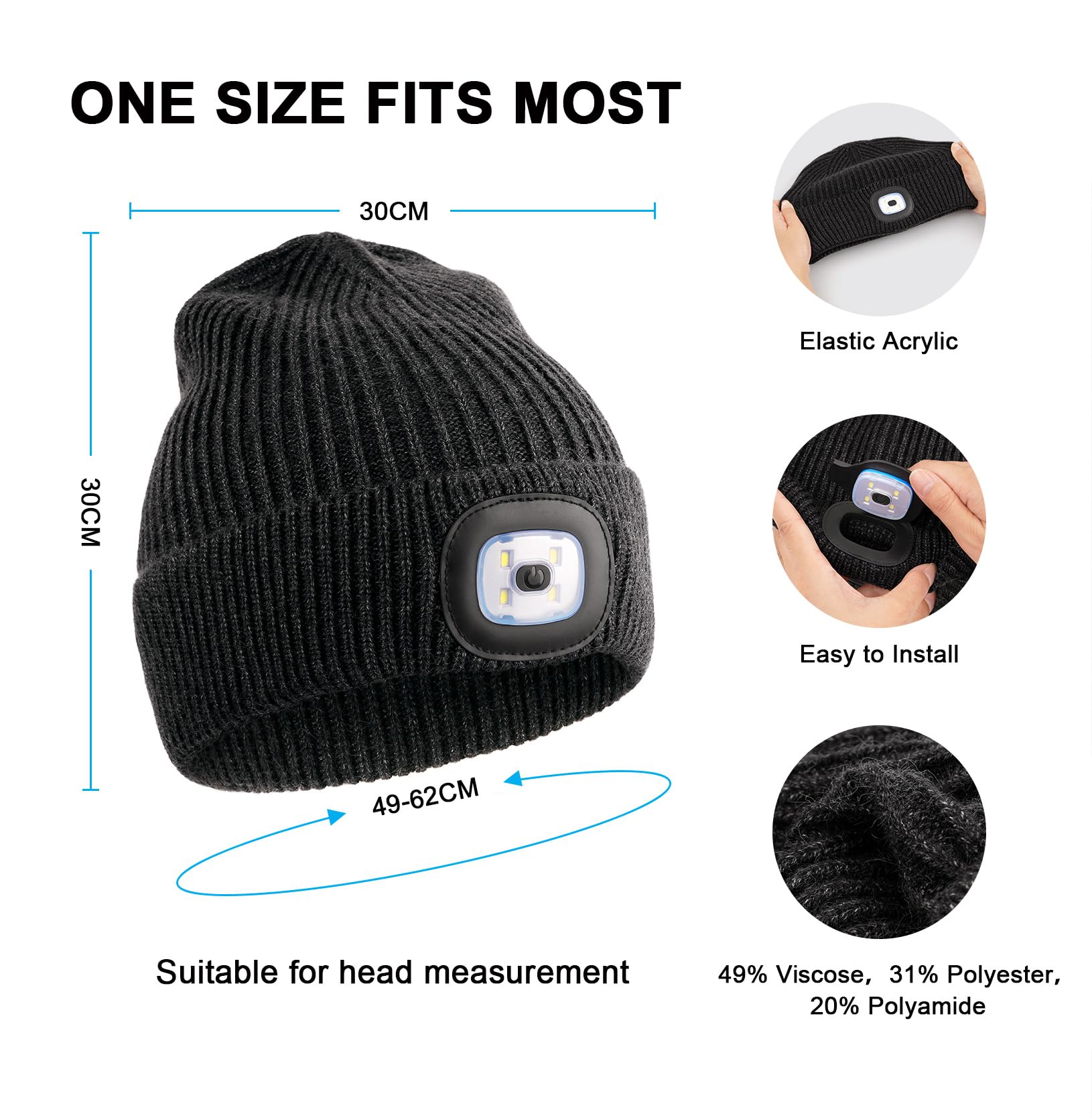 - 【One Size Fits All】This flashlight beanie is suitable for most head sizes, and its ultra soft material makes you feel warm and comfortable in the cold winter. Light LED beanie is the best gift choice for holidays such as Thanksgiving, Christmas, Father's Day, and birthdays.