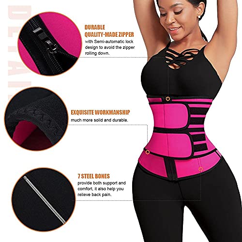 - DOUBLE STRAP WAIST TRAINER: The abdomen double-layer compression design and wide design is wider than generic items, more area covered, more sweating comes, makes the abdomen effect more obvious. Double Belt + zipper combination design, and sticky adhesive. Double strap waist trainer women help to boost thermo activity all the way down to your lower abdomen. Give you a perfect waist trimmer+waist trainer. it gets you a completely different feeling compared with others.