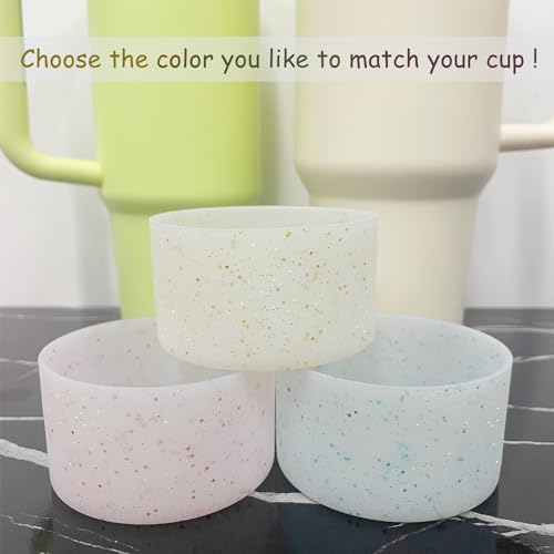 WORBSS Glitter Silicone Boot Sleeve for Stanley Cup H2.0 Tumbler 20 30 40oz & Hydro Flask 18-24oz with 2.85-3.0 inch Protective Anti-Slip Bottom Cover Bumper Accessories for Water Sport Bottles