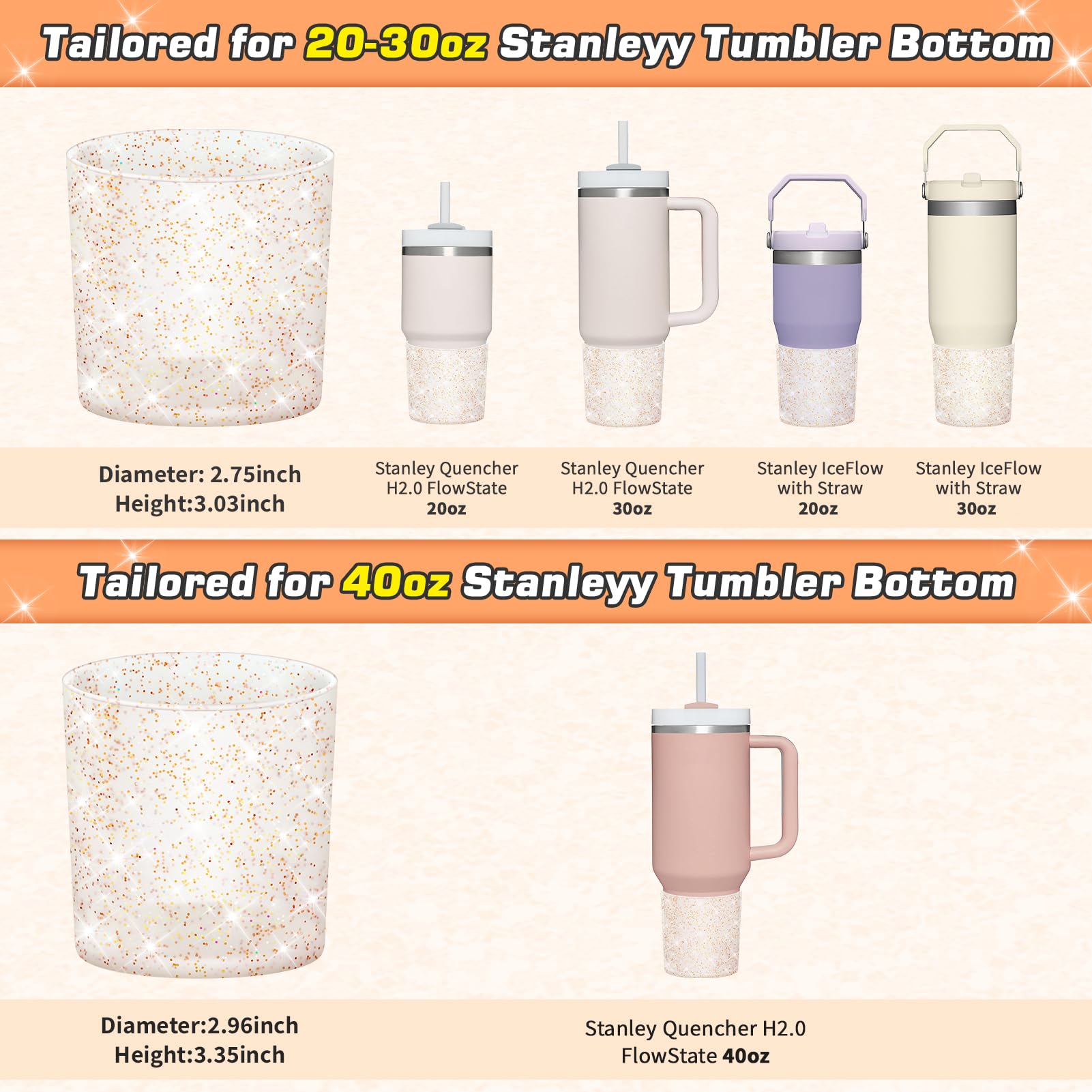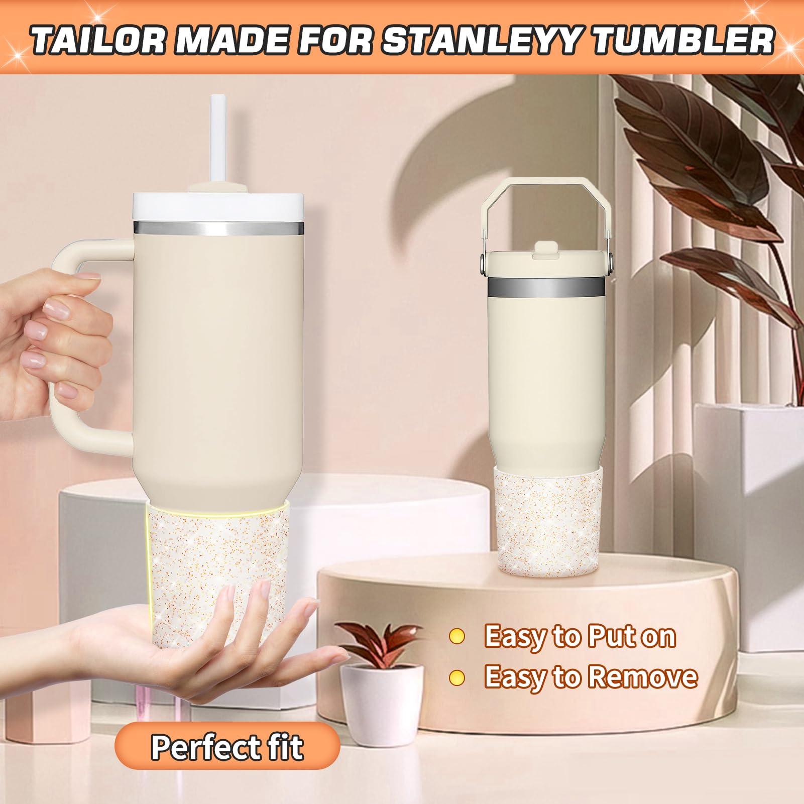 WUQID Glitter Higher Silicone Boot Compatible with Stanley Quencher H2.0 40oz 30oz 20oz & IceFlow Flip 30oz 20oz, Tumbler Cups Anti-Slip Bottom Sleeve Cover