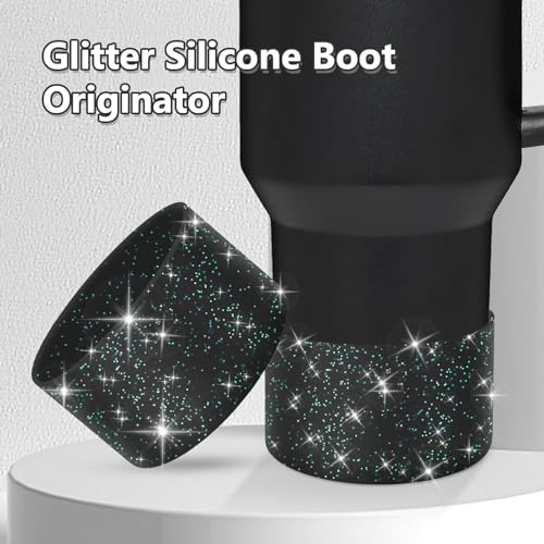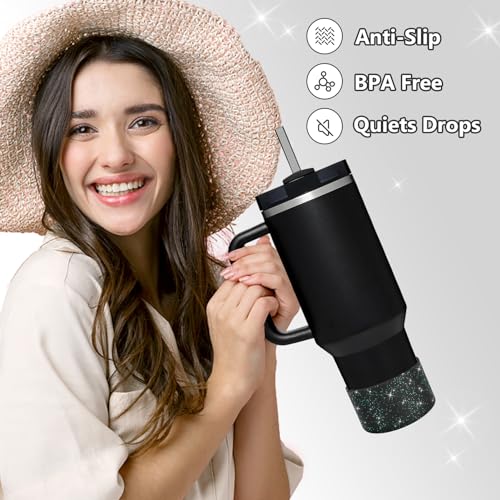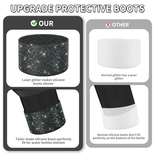 WUQID Protective Bling Silicone Boot Sleeve, Compatible with Stanley Tumbler 20-40oz & Hydro Flask Bottle 12oz-24oz, Glitter Reduces Dents Sleeve Cover for More Bottles/Tumblers Bottom of 2.83-2.95in