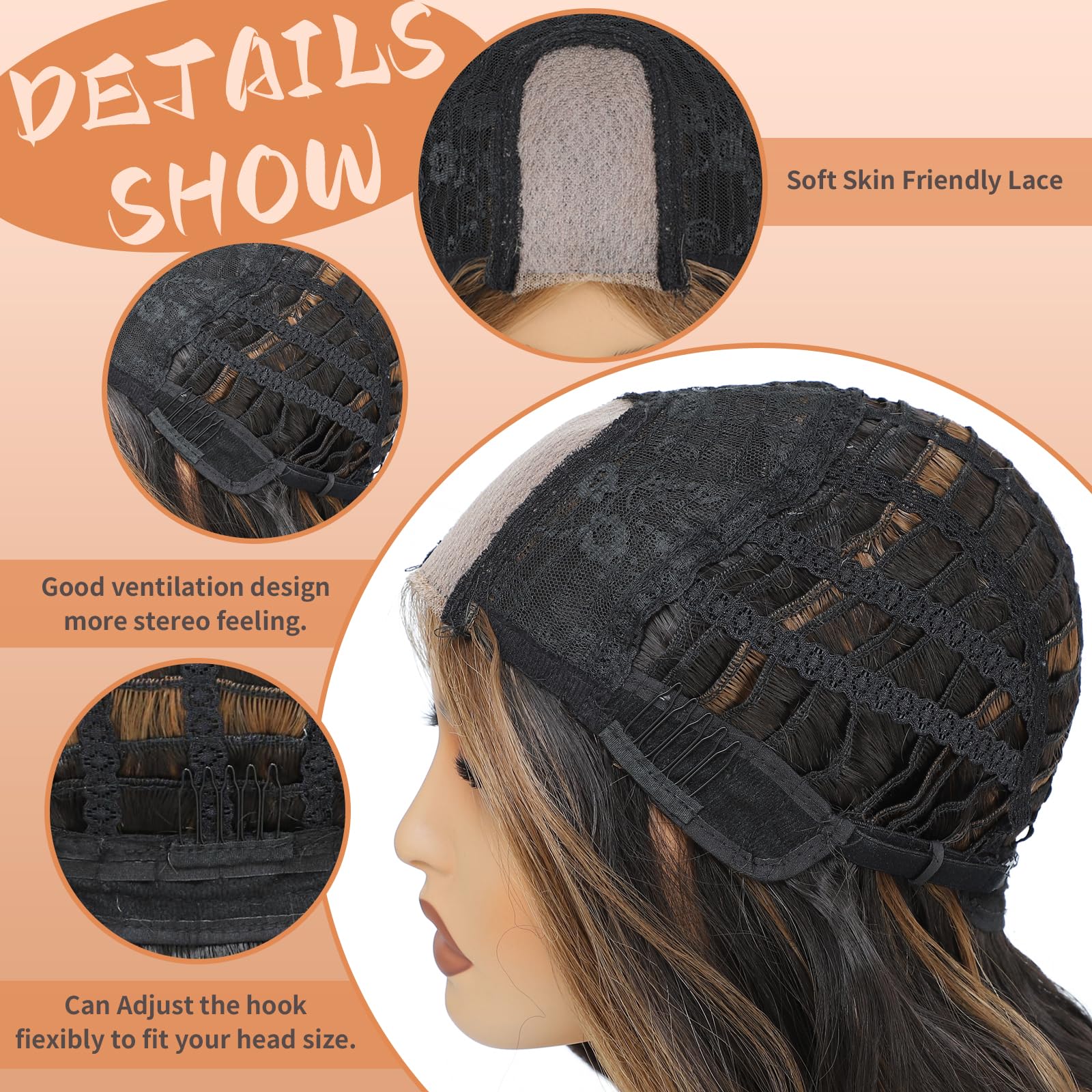 - Higlight Wig Material: Our natural wavy wig use high quality synthetic fiber,the hair is natural bouncy. Easy to comb and no tangle and no hair loss,changing style by curling iron(160℃/389℉)