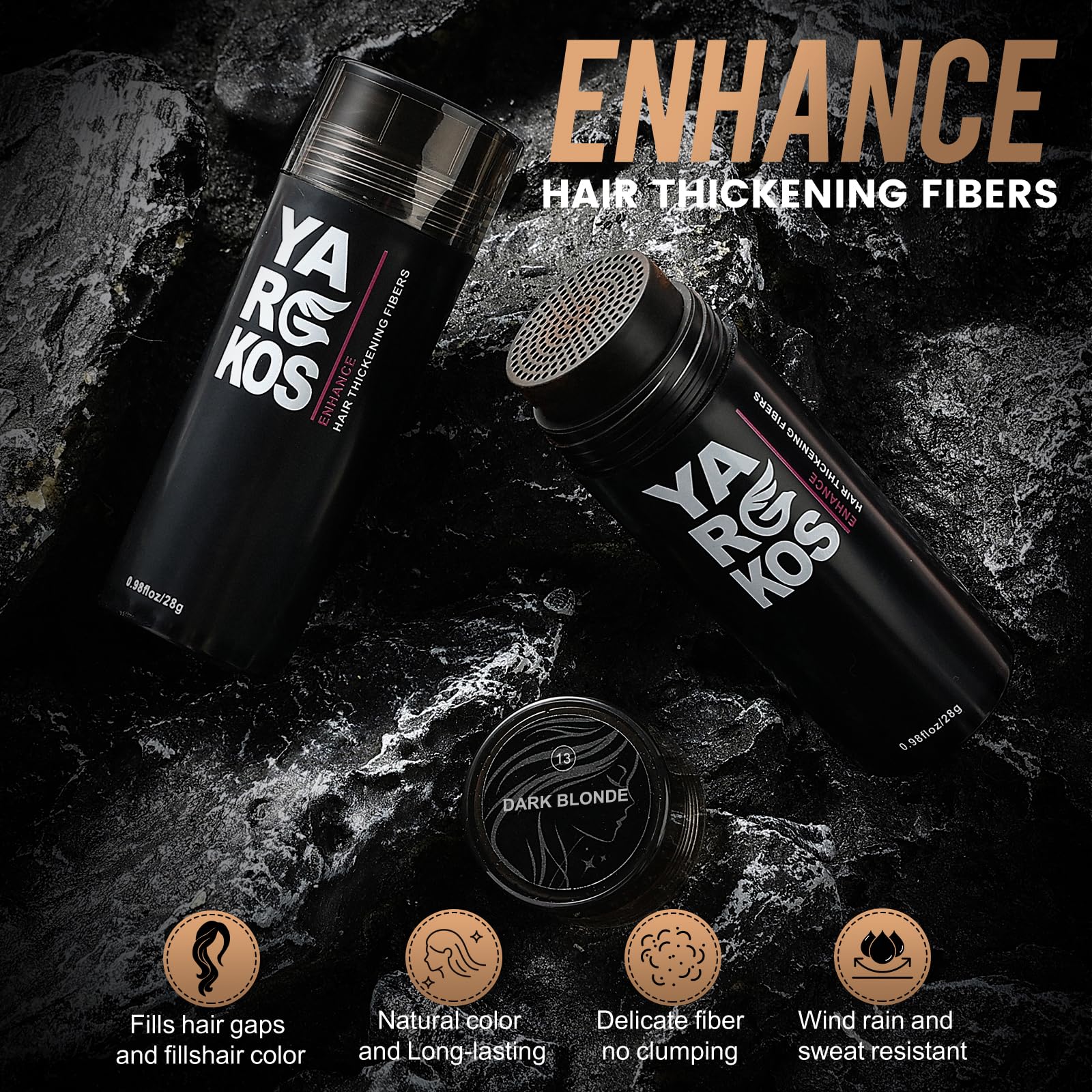 - Fill for Thin Hair - Yargkos Dark Blonde hair fibers create a natural look. Crafted from natural ingredients, Yargkos Hair Thickening Fibers seamlessly blend with existing hair, creating a realistic, eye-invisible hair effect. 28g/0.98 floz