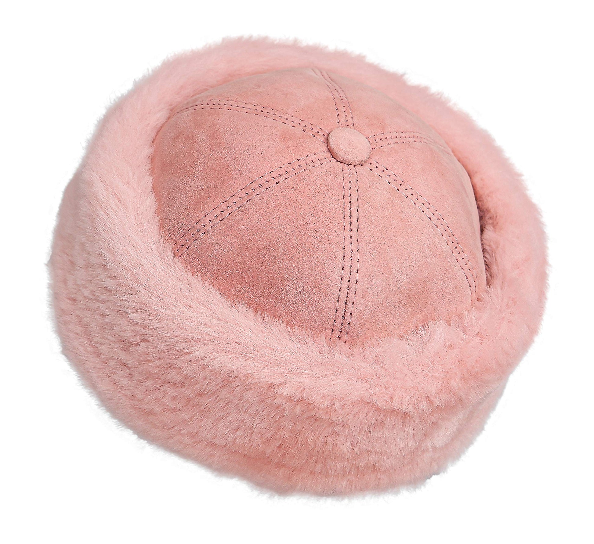 Zavelio Unisex Shearling Sheepskin Winter Fur Beanie Hat (Small, Pink)