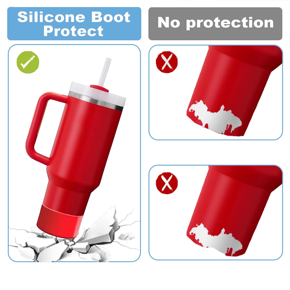 - 【Universal Compatibility】: The silicone sleeve fits most vacuum-insulated water bottles, including the 40 oz Stanley Quencher H2.0 (Boot Size: 2.85inch inside diameter, 1.69 inch high). It is designed to fit a wide range of bottles for Stanley Adventure Quencher Tumbler/Yeti Rambler/HydroFlask/Simple Modern/Iron Flask/MaxBase Tumbler/(Not all oz sizes are applicable). which perfectly fits the cup bottom and won't fall off easily.