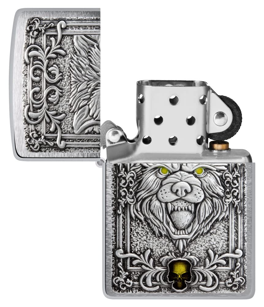 Zippo unisex-adult Wolf Lighters, Brushed Chrome Wolf & Skull Emblem